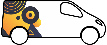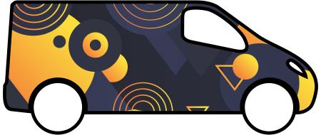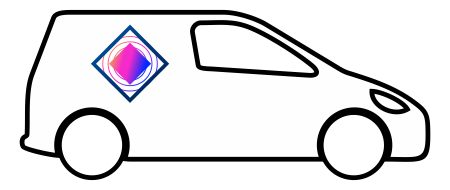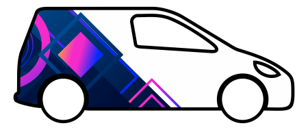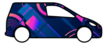 Logotips auto sānos un uz motora pārsega, kontaktinformācija aizmugurē un uz priekšējām durvīm